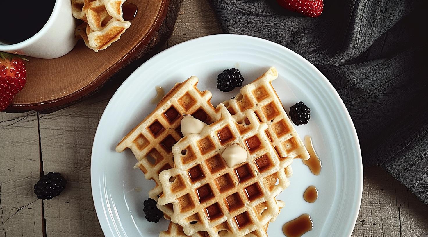 Zutaten zu einem Waffelteig vermengen und anschließend im Waffeleisen ausbacken.